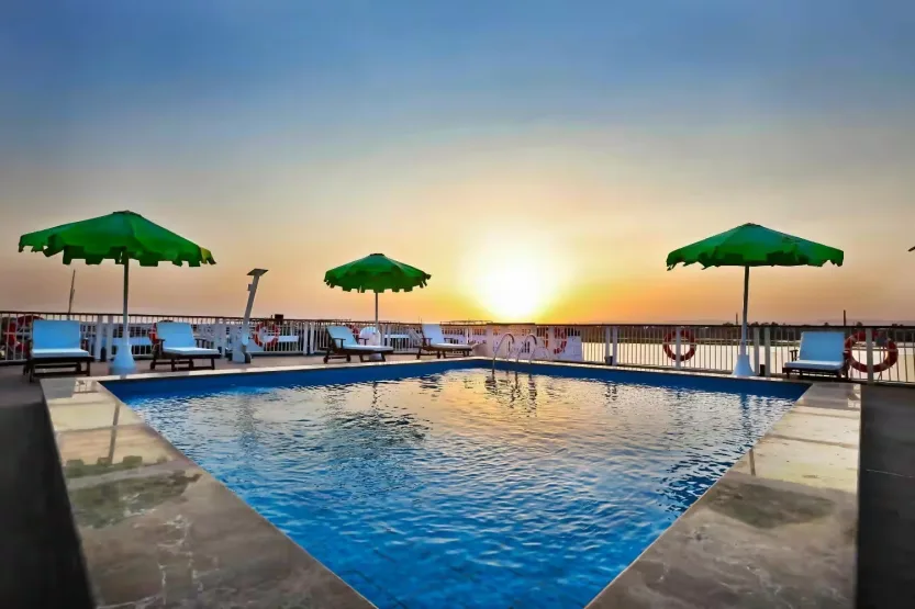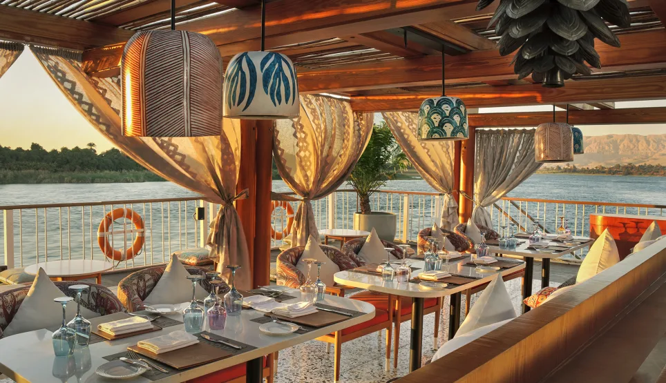 ’s Avonds sluit je je aan bij de bemanning buiten voor een viering van lokale gebruiken met de kans om een Galabeya, traditionele Egyptische kleding, aan te trekken en te proosten op de rijke cultuur en geschiedenis van de Nijlvallei.