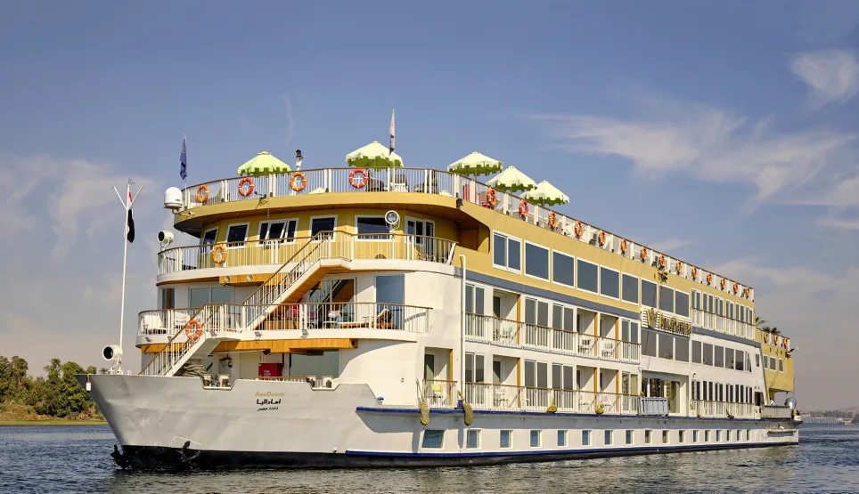De prachtige AmaDahlia is een uitnodigend schip met 72 passagiers en 36 hutten, waaronder 16 prachtige suites met een schat aan voorzieningen die u zullen verrassen en verrukken, waaronder een verwarmd zonneterras met zwembad en bar, The Chef’s Al Fresco Restaurant, haar- en nagelsalon en twee massageruimtes. Bewonder het schilderachtige uitzicht op de Nijl in luxe, geniet van regionaal geïnspireerd entertainment en proef de smaken van zowel lokale als westerse gerechten aan boord.