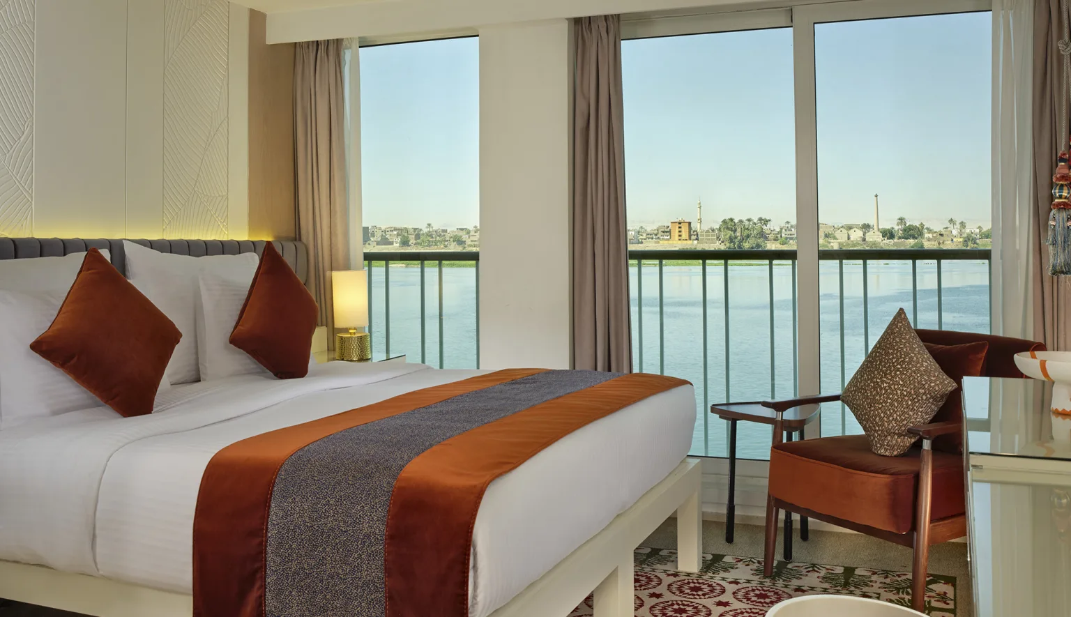 Nadat u bent uitgecheckt bij het hotel, neemt u in de vroege namiddag een vlucht naar het zuiden naar Luxor, voorheen bekend als Thebe, de hoofdstad van het Nieuwe Koninkrijk van Opper-Egypte. Luxor, dat op de werelderfgoedlijst van UNESCO staat, is de thuisbasis van twee verbazingwekkende tempels: Karnak en Luxor. Laat u verwelkomen op uw luxe riviercruiseschip om uw cruise op de Nijl te beginnen. Ontspan en kom tot rust en voor het diner ontmoet je je bemanning en vier het met een Captain’s Welcome Cocktail.