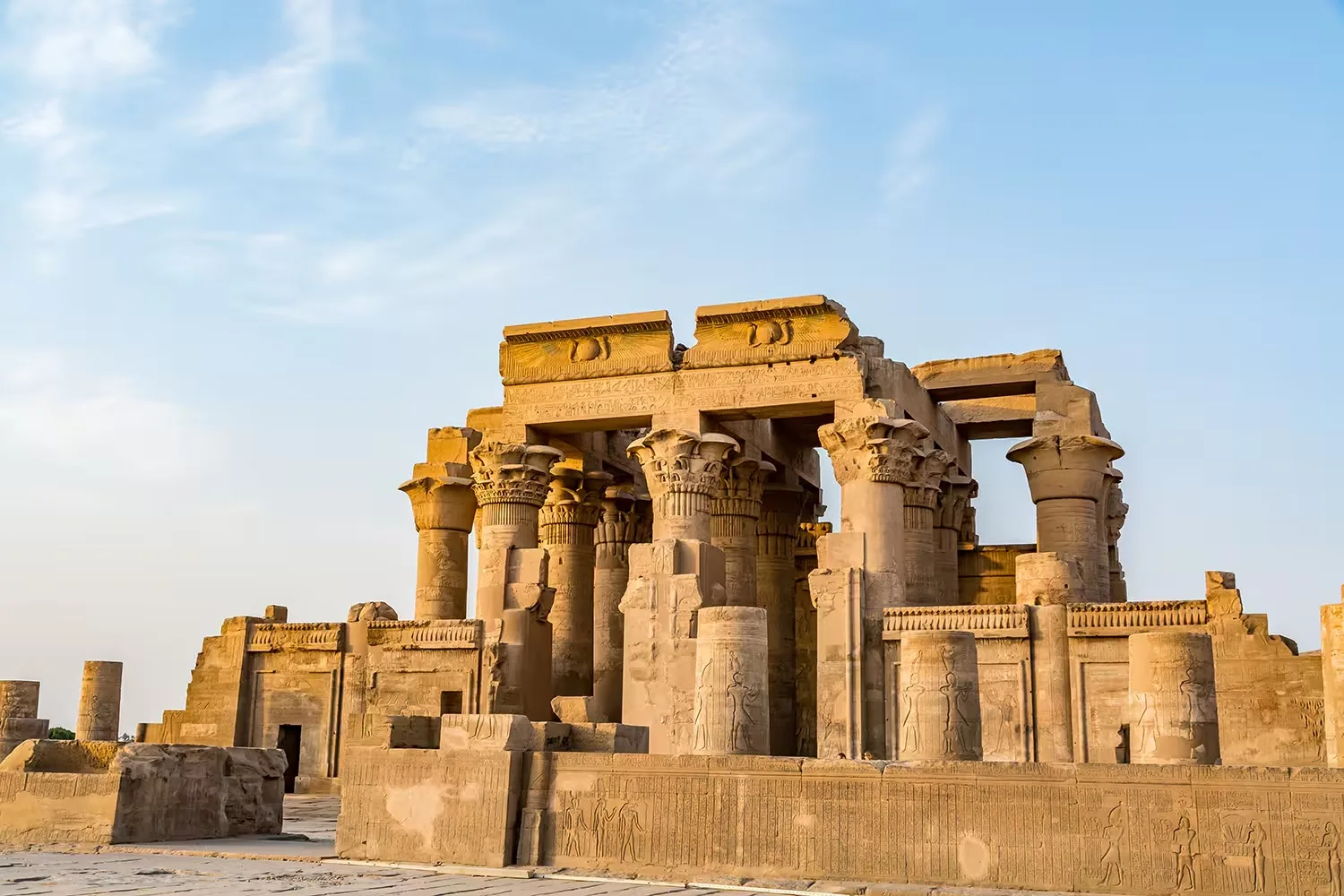 Ga vervolgens naar een kleurrijk Nubisch dorp op het eiland Hisa. Maak kennis met de warme en vriendelijke Nubische mensen die je zullen verwelkomen in hun dorp. Vaar ’s middags naar de Grote Tempel van Kom Ombo, waar de stijgende zuilen dramatisch boven de rivier de Nijl uitsteken. Deze tempel is uniek in Egypte en is gewijd aan twee goden: de krokodillengod, Sobek, die rechts zit; en de valkenkop Haroeris, “De Goede Dokter”.
