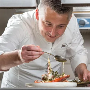 Zoals zijn NorthSeaChefs collega’s is Erwin Denys voorvechter voor het duurzaam gebruik van noordzeevis. Hij combineert dat gedachtegoed met een subtiele keuken waarin elk marien product zuiver en met zin voor smaaknuance bereid wordt. Maar hij is even beslagen in bereidingen met enkel groenten zoals de combinatie van pompoentexturen met ui en Belper Knolle kaas. Hopscheuten brengt hij met spinazie, eidooier en mousseline van witbier. Ook vleesgerechten passeren de revue in zijn menu.