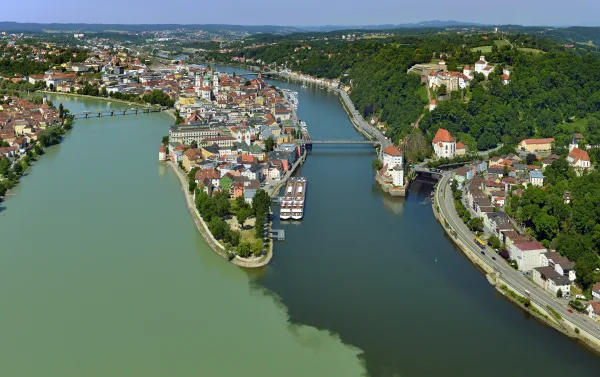 Je reis begint in het charmante Passau, waar drie rivieren samenkomen.