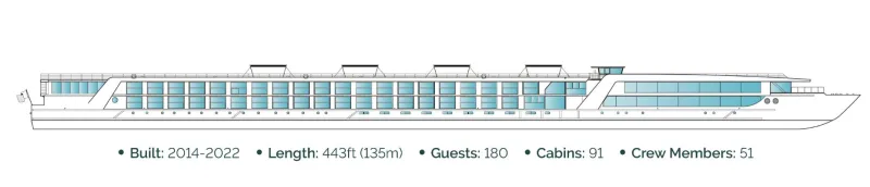 - Bouwjaar 2017, met een capaciteit van 132 passagiers/48 bemanningsleden