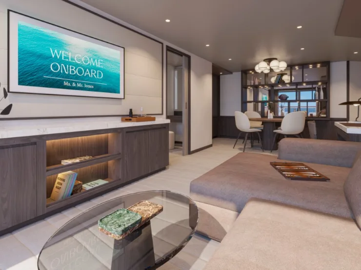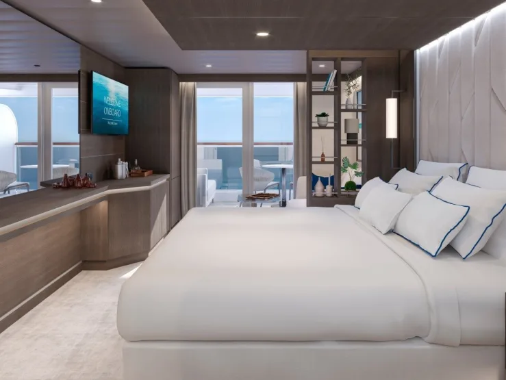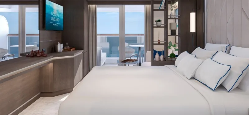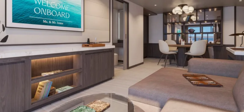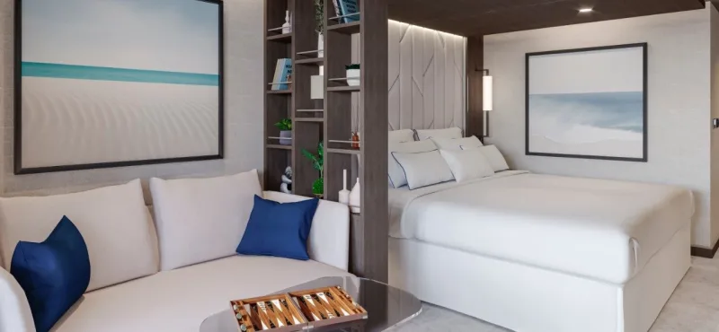 Er zijn enkel suites aan boord (vanaf 35 m2), in totaal 461, met een stijlvol interieur. Butler Service vanaf de Ocean Residence Suites.