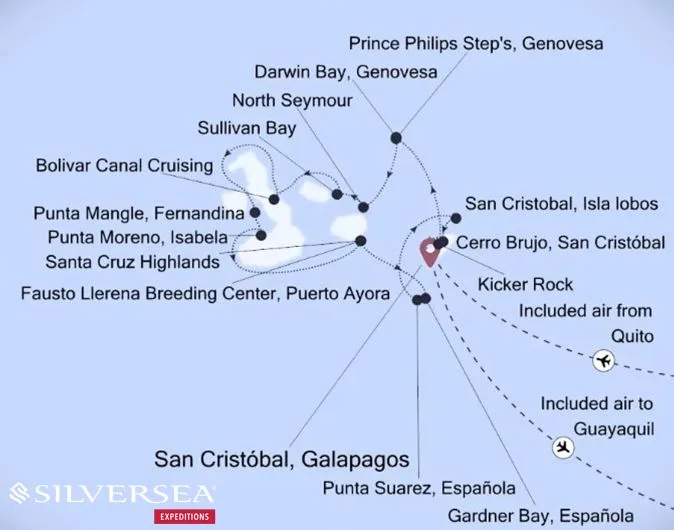 - waarvan 7 nachten, expeditiecruise San Cristobal – San Cristobal aan boord van SILVER ORIGIN