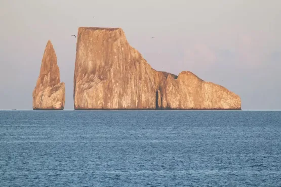 Kicker Rock is het verticale overblijfsel van een voormalige tufsteenkegel op minder dan 5 kilometer ten westen van San Cristobal. Zowel de Spaanse naam “Leon Dormido” (Slapende Leeuw) als de Engelse naam Kicker Rock impliceren dat het slechts één rots is, terwijl het in feite een grotere is van 300 meter lang en 100 meter breed met een maximale hoogte van ongeveer 150 meter.