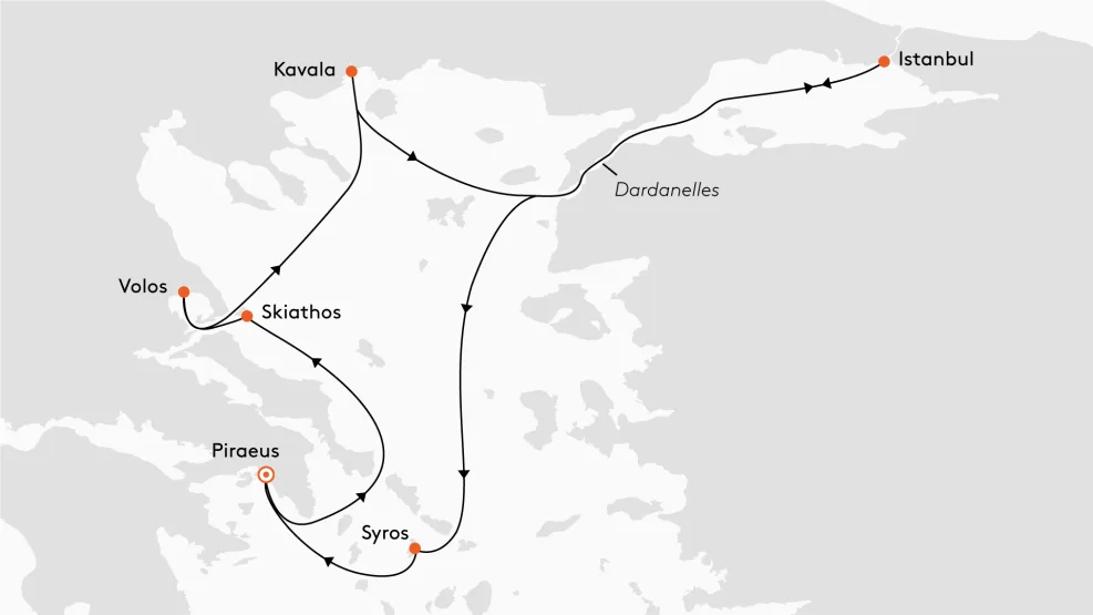 Ga mee op een veelzijdige cruise langs de Griekse kust richting de Bosporus. Het oude Istanbul met zijn sultanspaleizen, levendige bazaars en culturele schatten toont zich van zijn meest magnifieke kanten.
