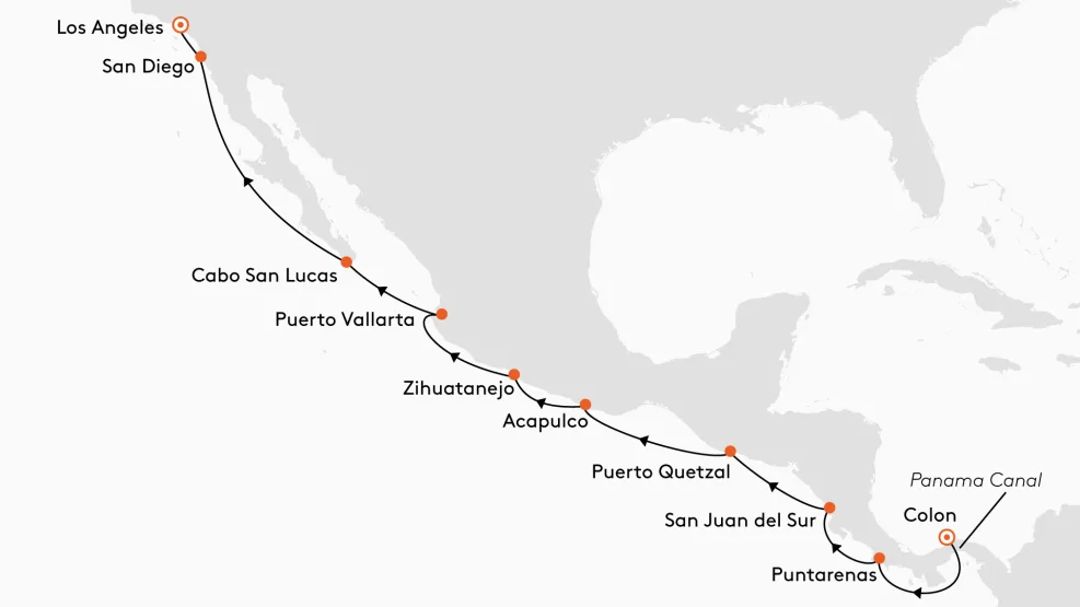 Ga mee met de EUROPA 2 op weg naar de diverse westkust van Centraal-Amerika en de VS. De passage door het Panamakanaal en de adembenemende natuur in het land van de Maya’s zijn slechts enkele van de vele hoogtepunten.