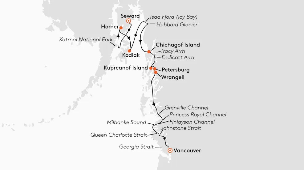 Ook mogelijk: van Vancouver naar Seward (Noord route): van 28 juli tot 10 augustus 2025 (INS2533)