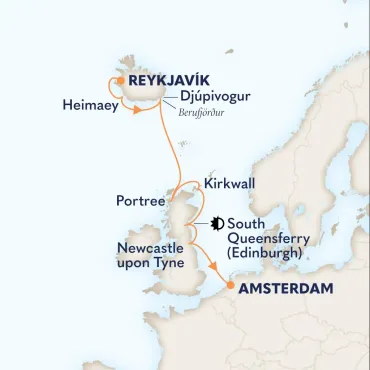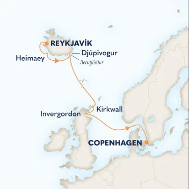 Bezoek Reykjavik, een kosmopolitisch stadscentrum dat op geothermische kracht draait. Ga tijdens je cruise naar Ijsland terug in de tijd naar het Viking-erfgoed in het Nationale en het Saga Museum en in de fjorden en baaien.