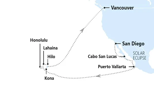 Een onvergetelijke Solar Eclipse-cruise met het zeldzame en kosmische wonder van de zonsverduistering langs de kust van Mexico tot de borrelende Kilauea-vulkaan van Hawaï.
