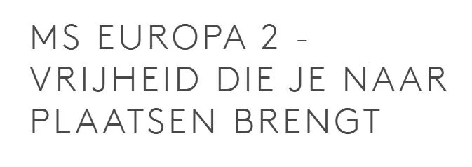 Met maximaal 500 gasten kunt u rekenen op maximale persoonlijke ruimte en individuele service. En dat alles met een uiterst luxe aantalverhouding van bijna één op één. De EUROPA 2 combineert comfort met een hoge mate van flexibiliteit door ook kleine havens en afgelegen hoeken buiten de gebaande paden aan te doen.