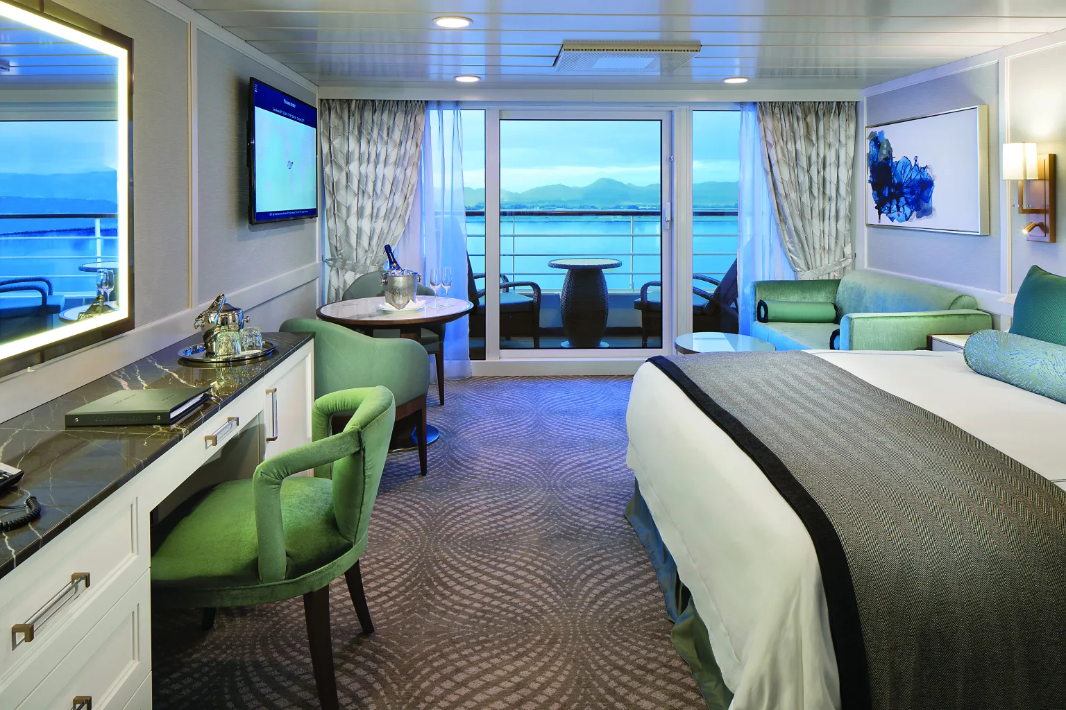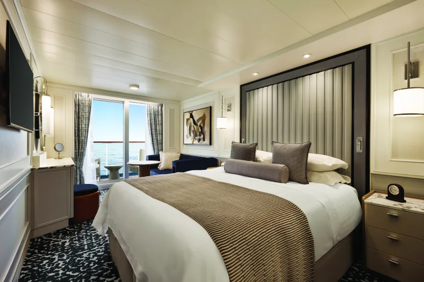 - Concierge Level Veranda Stateroom: 27 m2 met balkon (dek 7, 8, 9, 10, 11, 12)
