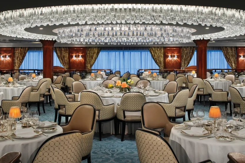 De Grand Dining Room is de luxueuze grand dame van de culinaire wereld van Oceania Cruises. Hier kun je ontspannend genieten dineren in een prachtig interieur, met elke dag een ruime keuze: van de kenmerkende Jacques Pépin-klassiekers tot een spectrum aan mondiale smaken en een geheel nieuw Executive Chef’s Tasting Menu. De menu’s veranderen dagelijks met een uitgebreide keuze uit minimaal 10 voorgerechten, soepen en salades en 10 voorgerechten voor het diner, samen met gezonde opties zoals Aquamar Vitality Cuisine.