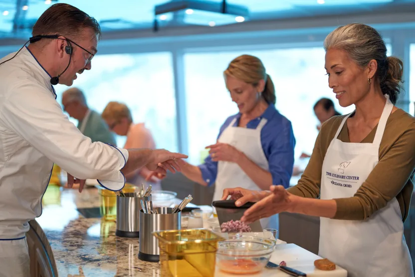 De Oceania chef-instructeurs bij The Culinary Center hebben een oprechte passie voor het ervaren van de culturen van de wereld door de lens van eten en koken – en voor het delen ervan met u op de bestemmingen over de hele wereld. Of u nu een dag op zee doorbrengt om de geheimen van het koken van vis te ontdekken of deelneemt aan een van de populaire Culinary Discovery Tours™ aan wal, het team van The Culinary Centre staat klaar om deskundige instructies te geven en tegelijkertijd de lokale cultuur tot leven te brengen.