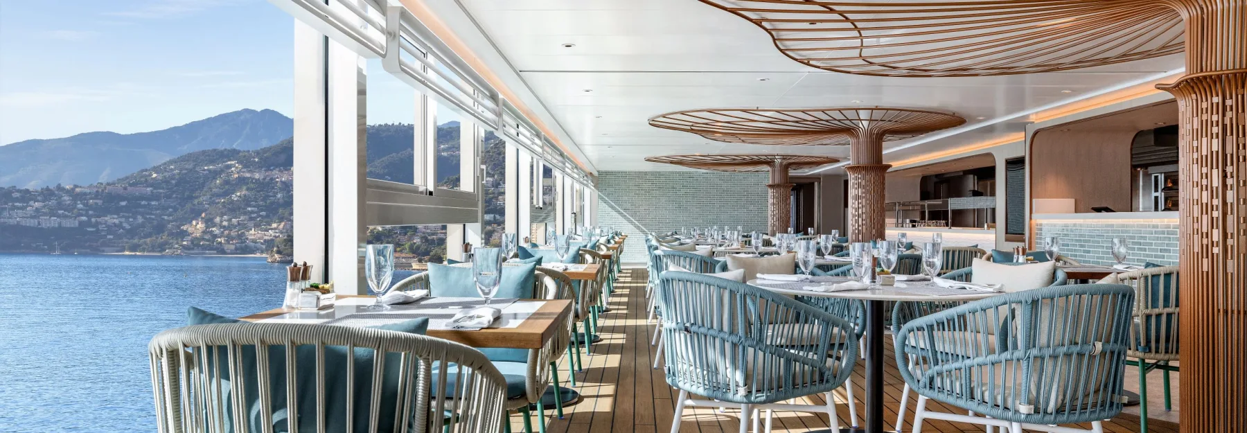 Geopend voor ontbijt en lunch aan boord van Vista. Geen reservering vereist. Enkel op Vista en Allura.