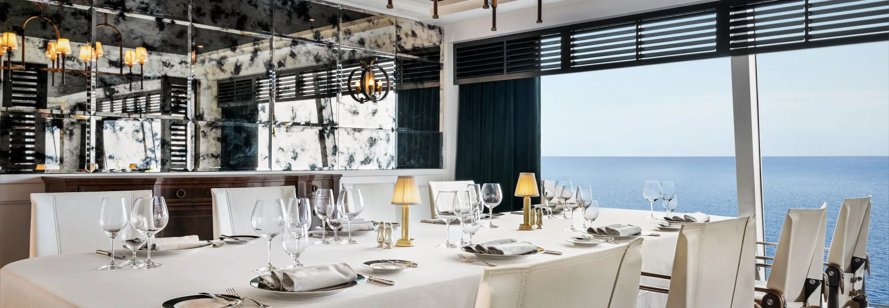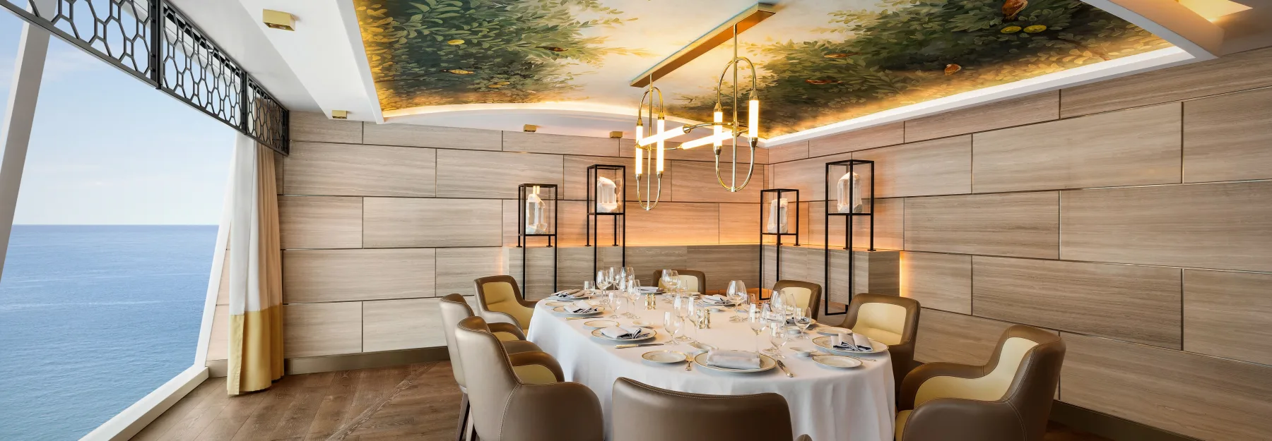 Organiseer een privéfeest voor maximaal 10 bevoorrechte gasten in onze meest exclusieve eetgelegenheid aan boord, Privée. Wees getuige van culinaire magie gepresenteerd op een op maat gemaakte tafel ontworpen door de beroemde Dakota Jackson en verlicht door een gouden Venini-kroonluchter. De prachtige omgeving is versierd met barok freeswerk en Ferrari-rode vloerbedekking. De keuken is even voortreffelijk. Kies uit verschillende gastronomische menu’s om een decadente en onvergetelijke gelegenheid te creëren. In het heiligdom van Privée prikkelt dineren alle zintuigen, waardoor u en uw gasten enorm voldaan achterblijven.