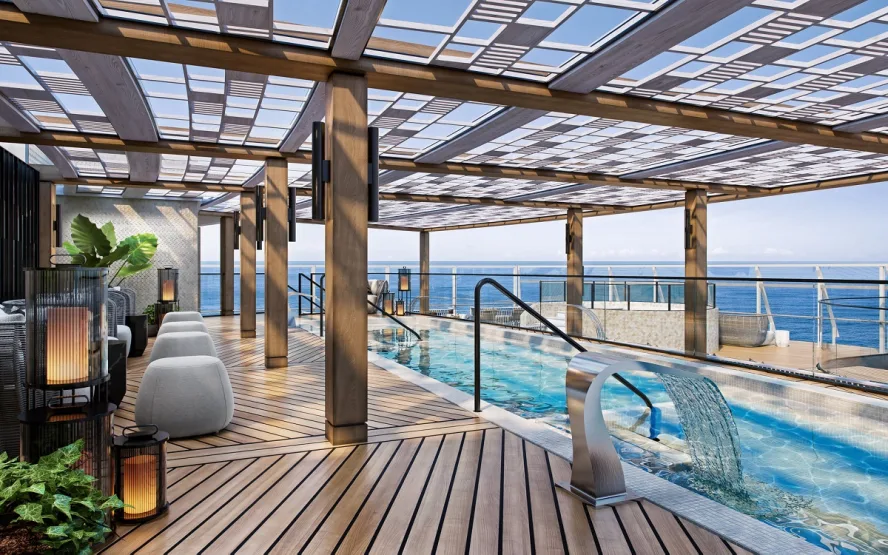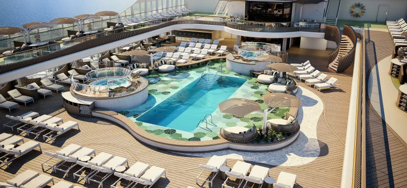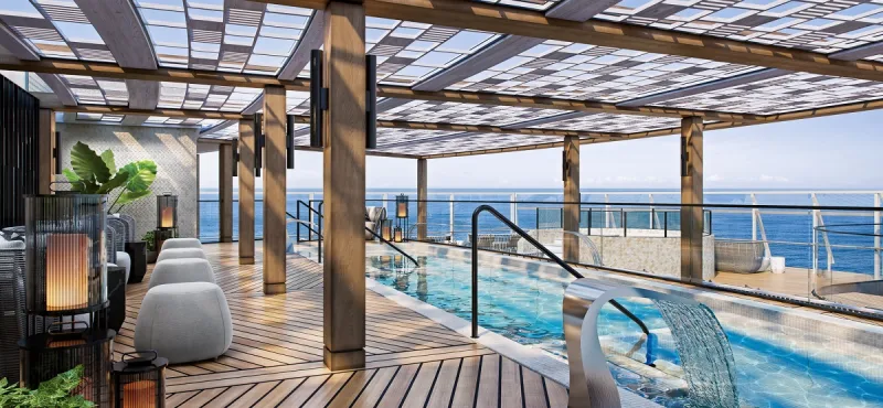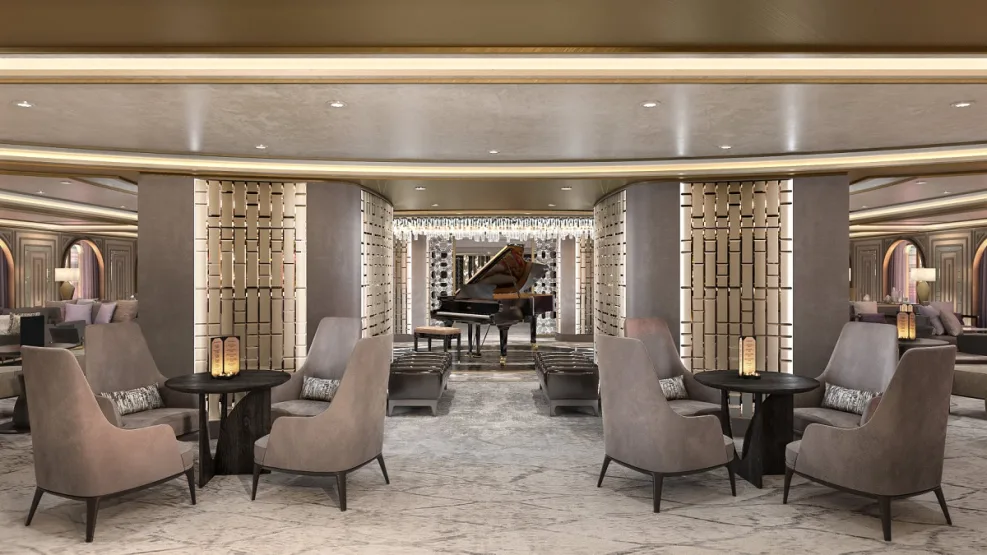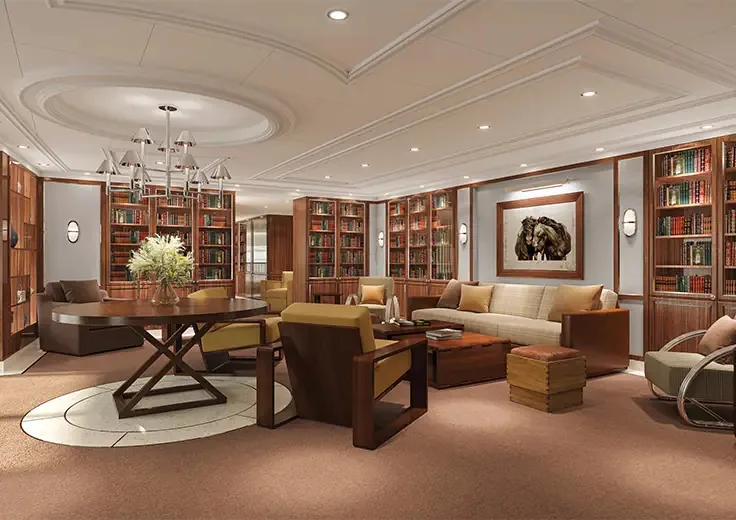 Bovenaan, op dek 14, biedt de Bibliotheek, in een exclusief design door Ralph Lauren Home, een uiterst gezellige hoek waar elke gast aan boord van kan genieten. Omzoomd door glazen wanden die panoramische zeegezichten bieden, nodigt de bibliotheek uit tot ontspanning en ultieme rust.