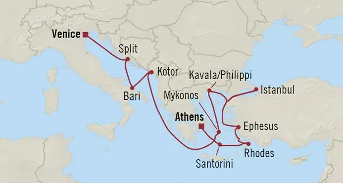 - Venetië – Athene, 20/05 > 01/06, vanaf € 6.149