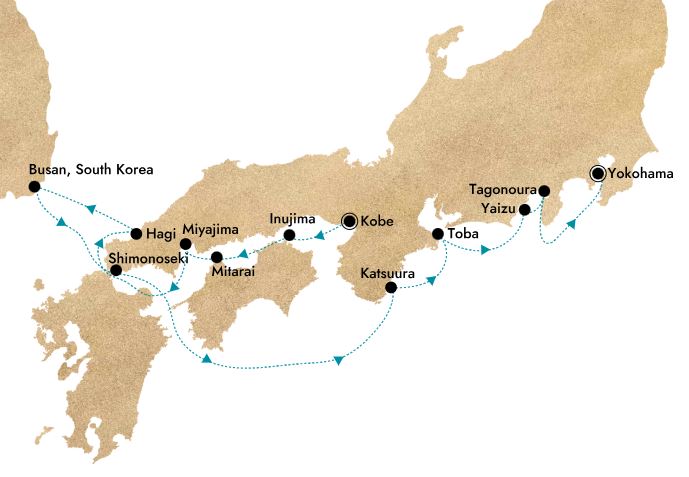 Je houdt halt bij de charmante Setouchi-eilanden, bewondert historische bezienswaardigheden en verkent het bruisende Busan in Zuid-Korea.