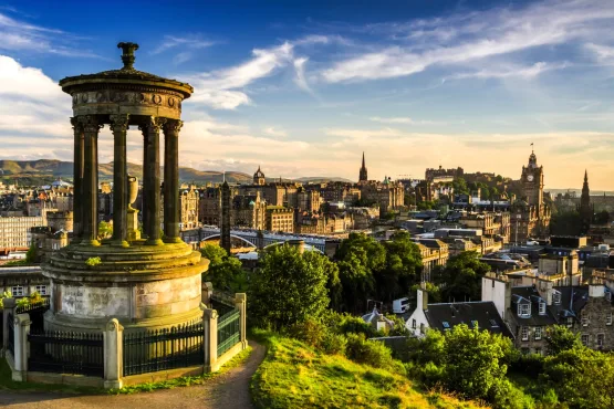 Drie uitkijkpunten bieden een fantastisch uitzicht op deze prachtige hoofdstad aan de zuidelijke oever van de Firth of Forth. Het historische kasteel is onmogelijk te missen bovenop Castle Rock, hoog boven de smalle en soms zeer steile middeleeuwse straatjes. De Royal Mile, een kilometerslange parade van Victoriaanse gebouwen in de oude stad, verbindt de twee koninklijke residenties Edinburgh Castle en Holyrood Palace met elkaar. De imposante contouren van Arthur’s Seat, een berg die zich meer thuis zou voelen in de Hooglanden, doemt op boven Holyrood Park. De New Town, een meesterwerk van Georgische stedelijke architectuur met een rasterachtig stratenpatroon, strekt zich uit in de richting van de haven vanaf Prince’s Street, aan de oostkant waarvan je een kleine Griekse tempel vindt die bovenop Carlton Hill opdoemt. De oude stad en de nieuwe stad, beide UNESCO-werelderfgoedlocaties, worden gescheiden door Princes Street Gardens, de groene longen van de stad en locatie voor de luidste muziek- en festivalevenementen.