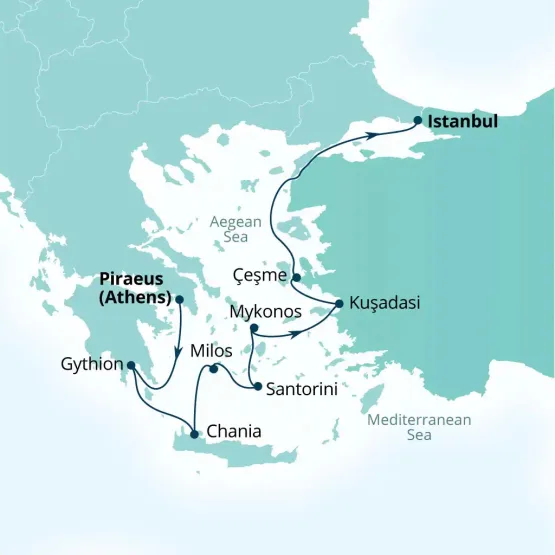 - Piraeus (Athene), Griekenland – Istanbul, Turkije