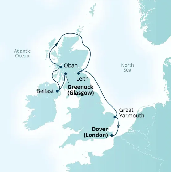 - Greenock (Glasgow), Schotland – Dover, Engeland, VK