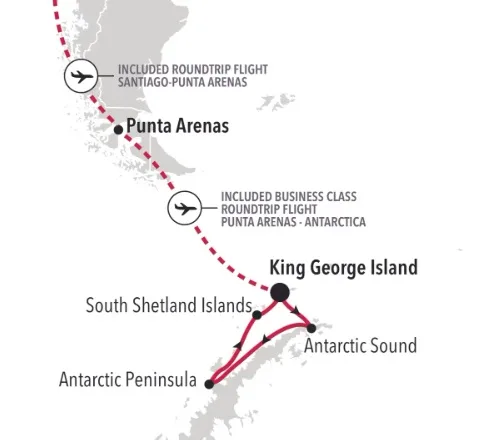 - Inclusief vlucht Punta Arenas-King George Island (Antarctica) in Businessclass