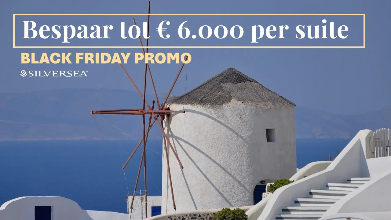 ALGEMENE VOORWAARDEN: Black Friday Aanbieding geldig op nieuwe, individuele boekingen gemaakt tussen 11 november 2024 en 2 december 2024 op geselecteerde reizen. Aanbieding geldig op geselecteerde reizen en van toepassing op gasten 1 en 2 in suite. Gasten die boeken met deze aanbieding ontvangen besparingen van EUR 1.500 per persoon of EUR 3.000 per persoon, op geselecteerde cruises. Aanbieding geldig op deur-tot-deur en haven-tot-haven tarieven.