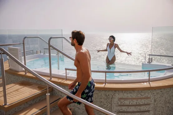 Het baanbrekend, asymmetrisch ontwerp en buitengewoon gebruik van glas in zowel openbare ruimtes als in de suites zorgt voor ononderbroken uitzicht, waar u ook bent. Ook in de liften, die zich aan de zijkanten bevinden in plaats van in het midden van het schip. In de lift heb je uitzicht op de oceaan, jouw bestemming of aanloophaven.