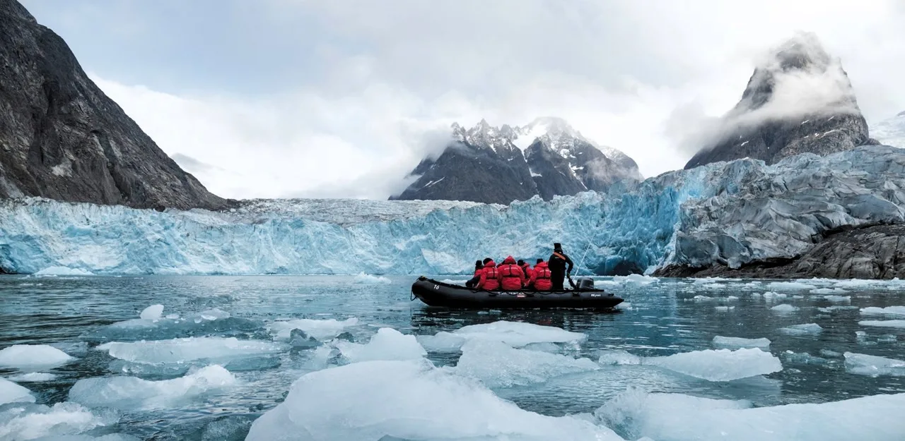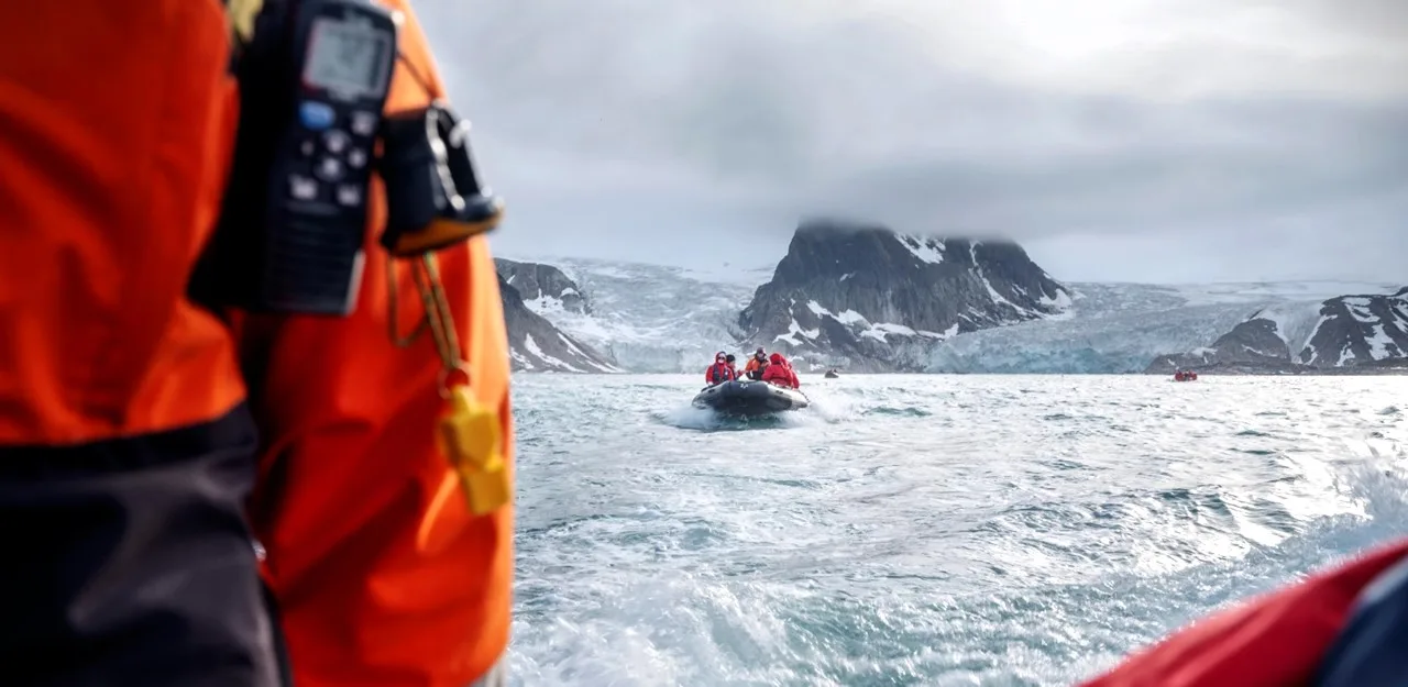 “We brengen onze gasten met zodiacs aan land en houden onze groepen klein, 8 à 9 personen per zodiac. Dit maakt de ervaring persoonlijker en geeft iedereen meer ruimte om foto’s te nemen. We varen altijd op een veilige afstand van dieren en gletsjers om het ecosysteem niet te verstoren.”