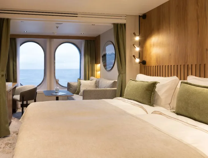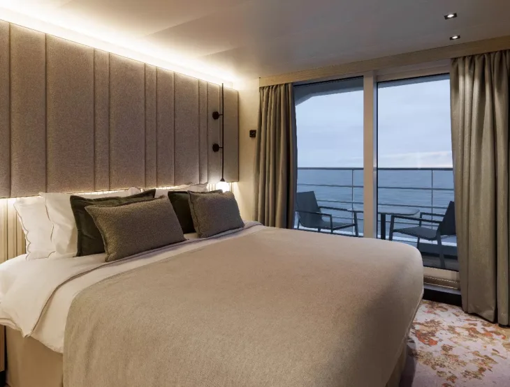 Balcony Stateroom M5, 25 m2 inclusief een privébalkon van 5 m2.