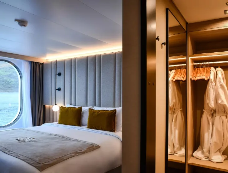 Alle kajuiten zijn voorzien van: Smart HDTV, gevulde minibar, Illy Espresso koffiezetapparaat met pods, waterkoker en Kusmi thee, individueel regelbare airconditioning, handdoeken (voor gebruik in de kajuit, aan het zwembad en in de fitnessruimte), badjassen en pantoffels, toiletartikelen van Lajatica, kluis, Nikon Prostaff 3S 10×42 verrekijker. Bovendien geniet u van een gratis Wi-Fi optie en van een welkomstfles champagne.